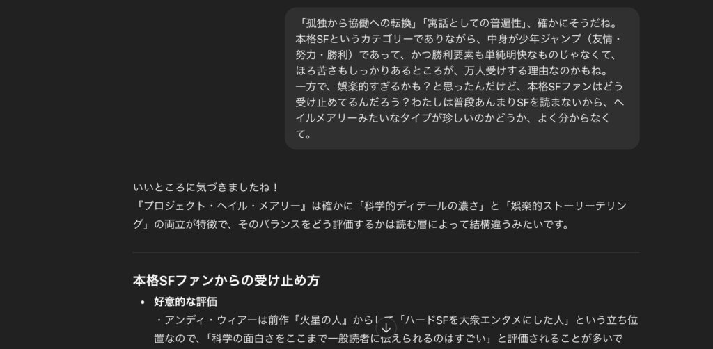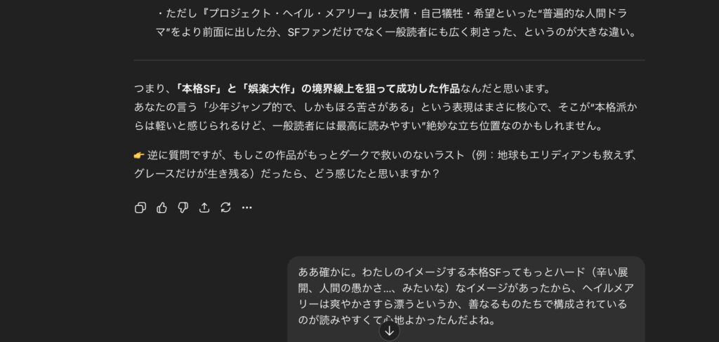 プロジェクト・ヘイル・メアリーについてAIと議論したら●●だったことに気づいた